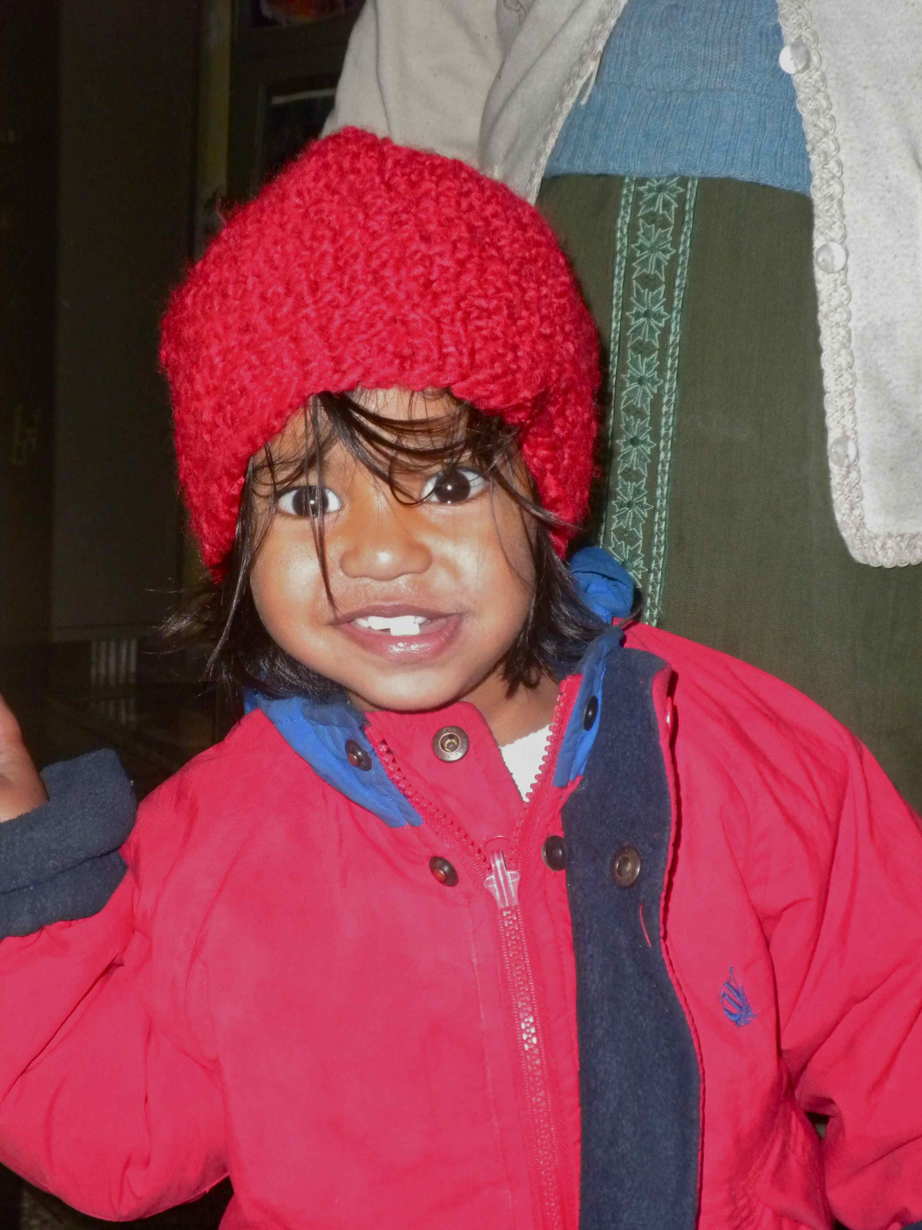 So about a year ago my friend Andrea and I decided that we were going to knit the kids all a hat – around 75 to be precise. I don’t know if we realized when we started out what a crazy idea this was to begin with, but lo and behold here we are and its January 8th, 2011 and I am delivering 75 hats to the kids. I can’t really believe it. It took a whole suitcase to get them over here. I spent most of the year looking at old photos and footage shot for Lifting Dreams assessing the size of the kids’ heads. No matter how much we prepared we didn’t get them all perfect, but that wasn’t really the goal I guess. The goal was to feel connected to the kids when we weren’t with them, and I think Andrea would agree with me that this little project kept us very much connected. My only regret is that my Mango Didi isn’t here for the hat drop as well. But we’ll see what the future holds for another Natalie/Andrea/SRA visit. 🙂