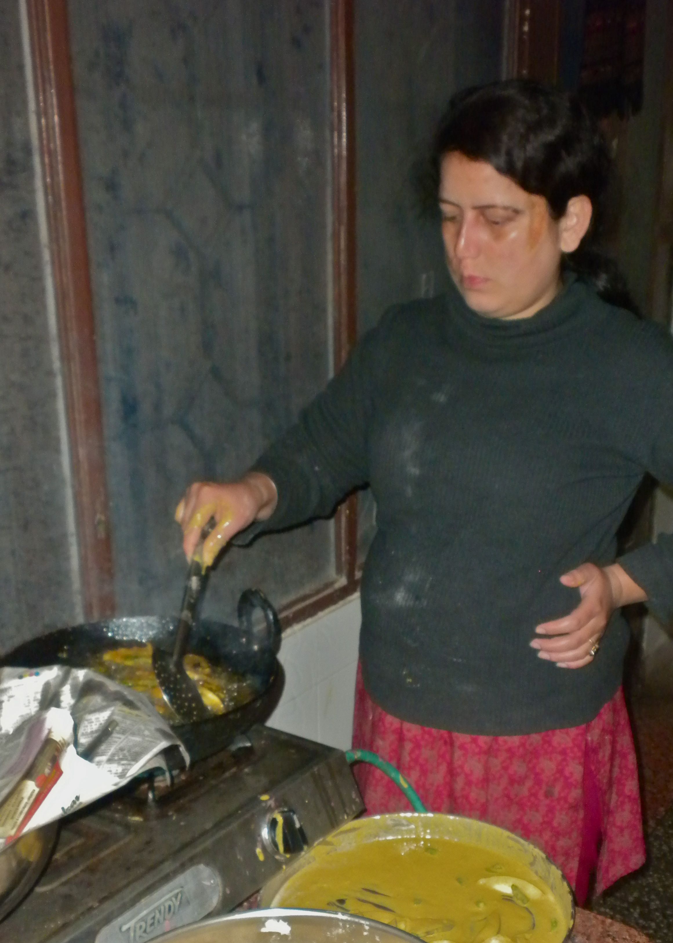 Oh, and remember those veggies I was talking about. I bought 4 of the most beautiful eggplant I have ever seen in my life along with some mirchi (chile) and asked Seema didi to help make them into some yummy brinjal (eggplant) pakora. We also made a salty cookie/cracker with caraway seeds. Recipe to come as I want Seema didi to show me how to make them – this first round she just kind of did it. I am not complaining though, as they were totally delicious!! The pakora went so fast that I didn’t even get to take a picture! Will make sure I get one when we make them again for cooking instructions. Did not get to take pictures of the final cookie/crackers either because I had to run off to Haridwar (next post!). I know, big fail Natalie didi.