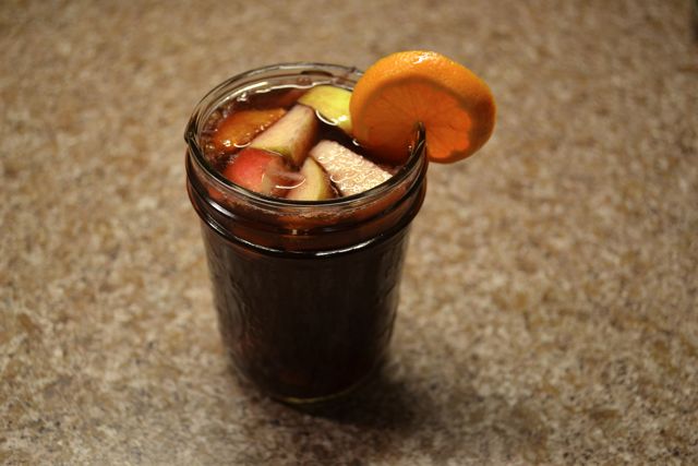 My girl Lindsey makes a mean sangria. In fact, as I am reflecting back on all of the ruby colored, citrus infused concoctions I’ve sampled over the years, Lindsey’s stands out as the very best. I am not the only one singing her praises. This summer Lindsey’s white sangria won the third slot for Best Sangria in Brooklyn at Huckleberry Bar‘s 1st Annual Sangria Competition. She’s legit. So when she told me she was developing a Apple Spiced Sangria for an art opening at our office this fall, I had no doubt it would be an instant classic. She did not disappoint. The result was the perfect hybrid between a wintery mulled wine with notes of cinnamon and clove and her signature red sangria. It’s bound to get you in a festive mood but light enough so you can sip throughout the night at your next holiday office party and not get sloppy. Enjoy!