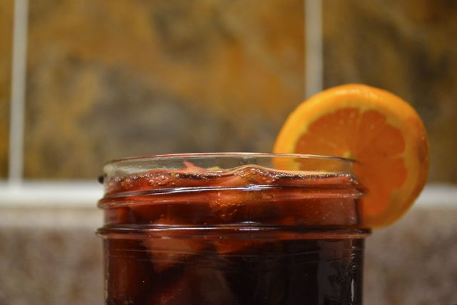 In a marinating vessel, combine liquor, wine, lemon juice and OJ. Add 3/4 cups syrup, mix well. Slice all fruit, add to mixture. Allow to marinate overnight. Before serving, test batch – it should be strong, but not at all bitter. If it is either too bitter or too tart, add the sugar.