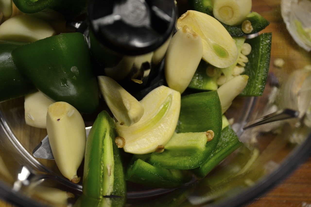 It’s fairly simple pre-processing to kill the frozen chicken taste – take a head of garlic and make a paste of this with green chillies. Now, this garlic has to be garlicky, not flat. That means it should stick to your fingers when you peel them and the individual cloves bleed, and if you lick the juice, it should sting your tongue hard enough to make you cry. That is mean garlic. The sort you need to flavour chicken, or anything else for that matter. Size does not matter here, you can get large or small cloves but make sure of the pungency. The green chillies should be similarly powerful. You may need to get a grindstone [mortar and pestle] to make a proper paste since food processors chop finely rather than paste. Any which way, get a paste the consistency of toothpaste. Add salt to the paste.