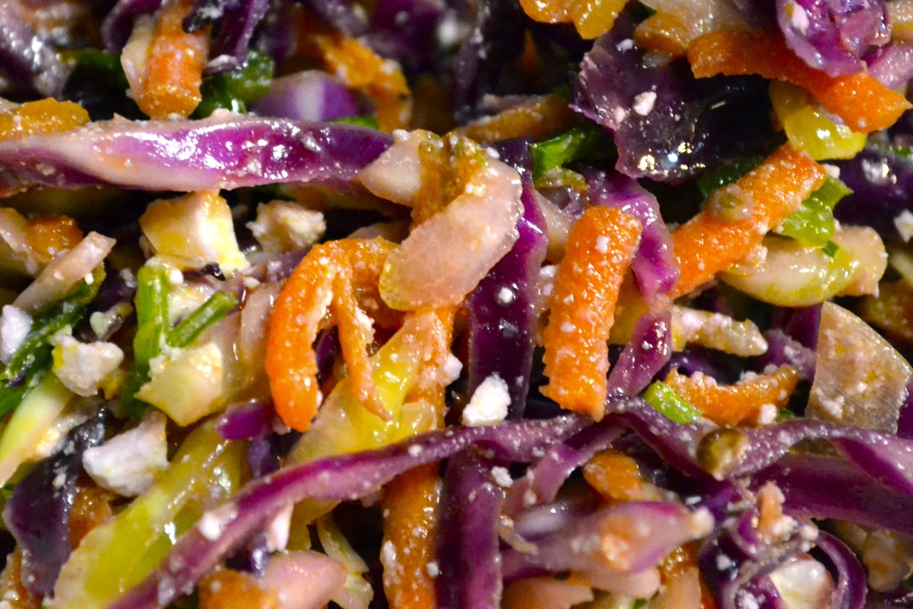 Winter Coleslaw with Feta and Green Onions
