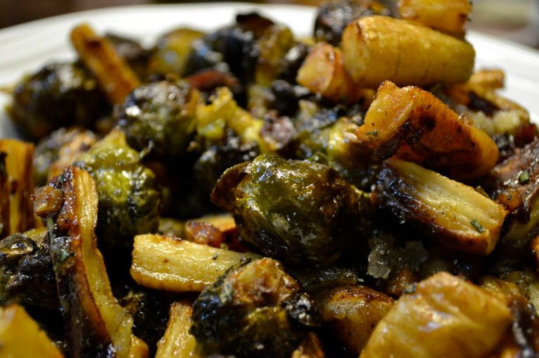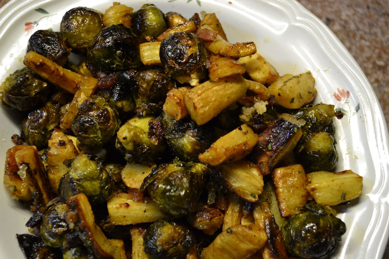 Roast Parsnips and Brussel Sprouts