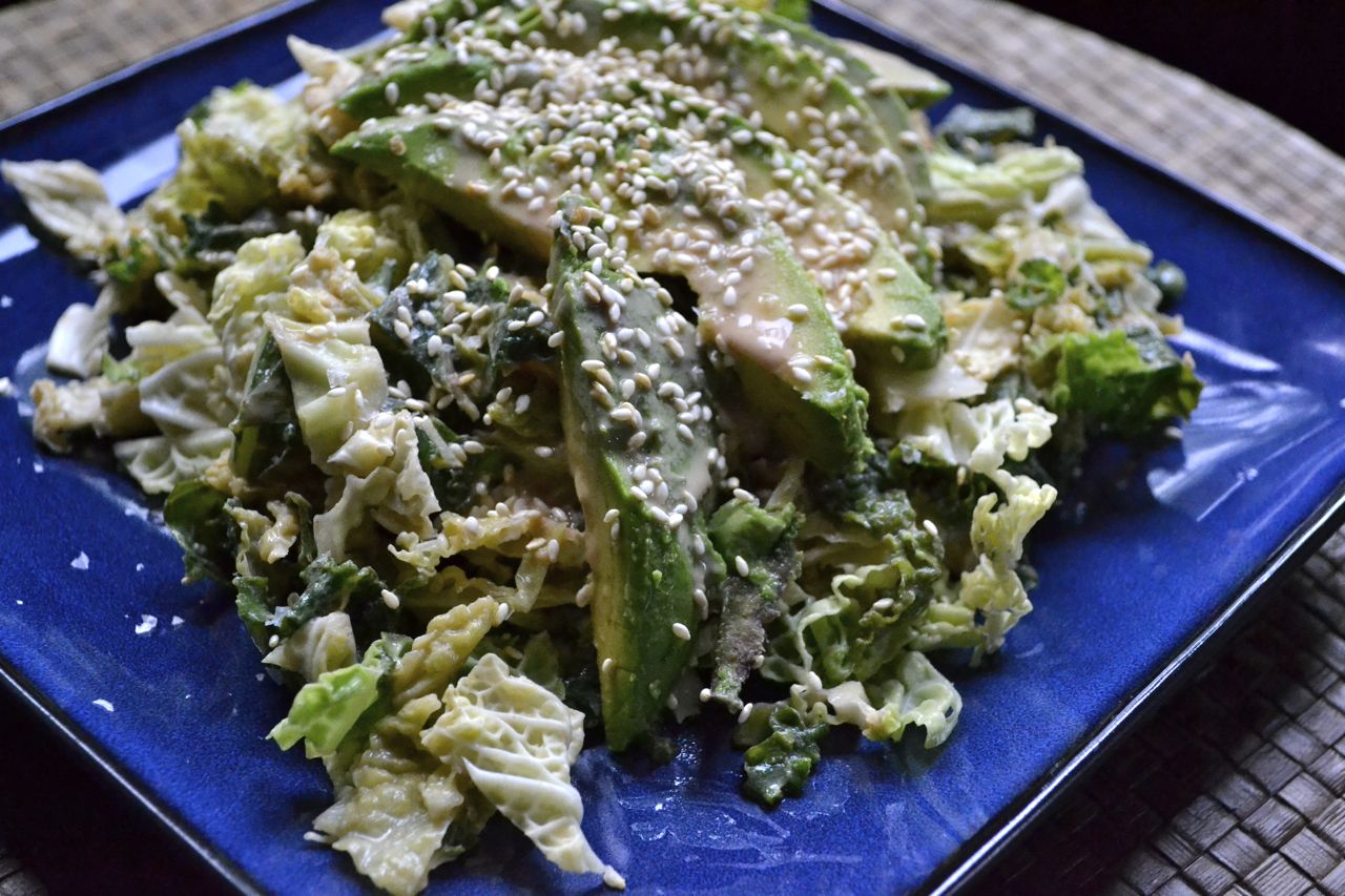 I used a mix of napa cabbage and a lacinto kale here, but you can experiment with different greens here. Red cabbage or chard might be interesting. Active time: 10 minutes, Inactive time: 20 minutes; Serves 4.