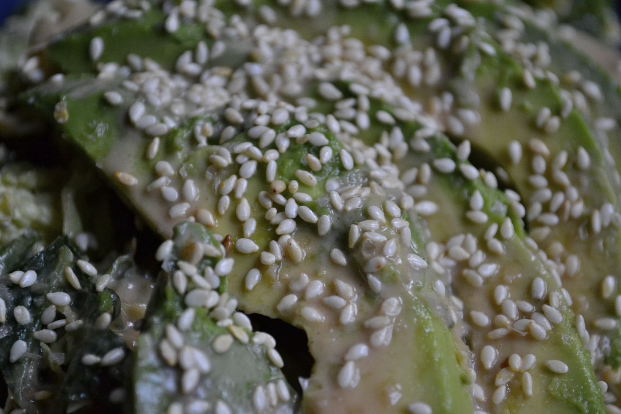 In a blender or food processor, blender all dressing ingredients together. Add carrots, jalapeno and half the dressing to greens and combine well. Divide onto plates, top with ¼ sliced avocado, more dressing if desired and sesame seeds. Enjoy!