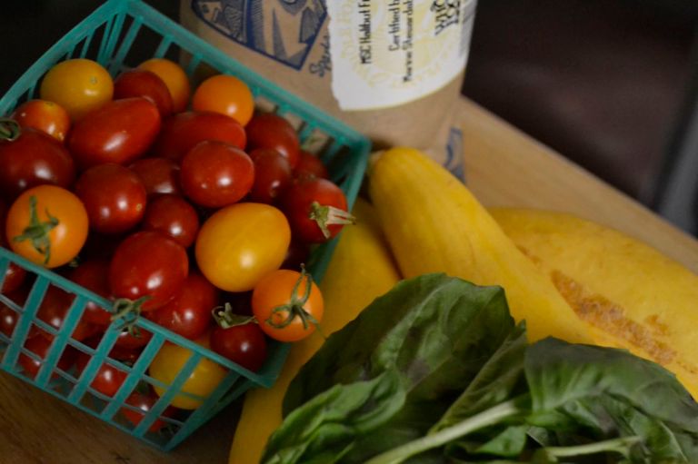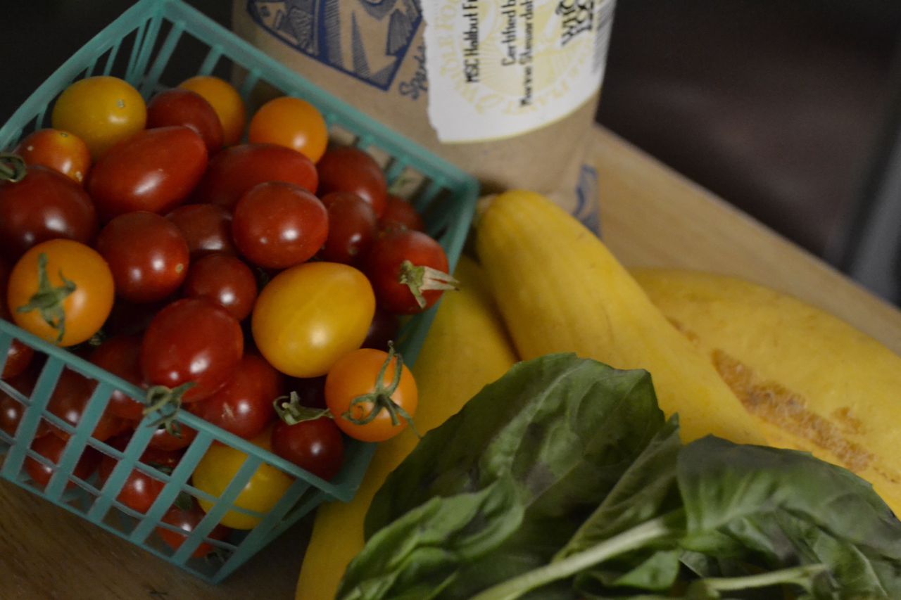 The growing seasons in the southwest are sort of flip-flopped with those in the the rest of North America. Right now, as most of the country is right in the middle of summer’s bounty with tomatoes, corn, pole beans, eggplants and peaches streaming out of local farms, Arizona’s fields pretty empty – any crops growing are in the early stages, like pumpkins and squash – and most of our “local” produce is shipped in from California. It’s quite sad, because Arizona winters and springs yield beautiful crops and like the rest of the country, farmers markets are everywhere when the season is in full swing. When I come home I make it my business to seek out whatever is local and in season but in the summer, I usually have to go to Whole Foods or some other large chain grocery store to do this as the farmers markets have slim pickings and very little of anything local. On one trip to to Whole Foods the other day I picked up the most beautiful array of mixed and heirloom cherry tomatoes and couldn’t wait to come home to use them. I was surprised to learn they were sourced from a farm in Wilcox, Arizona, the name I am not quite sold on yet – Sunizona – but I am definitely loving their produce and farming ideals