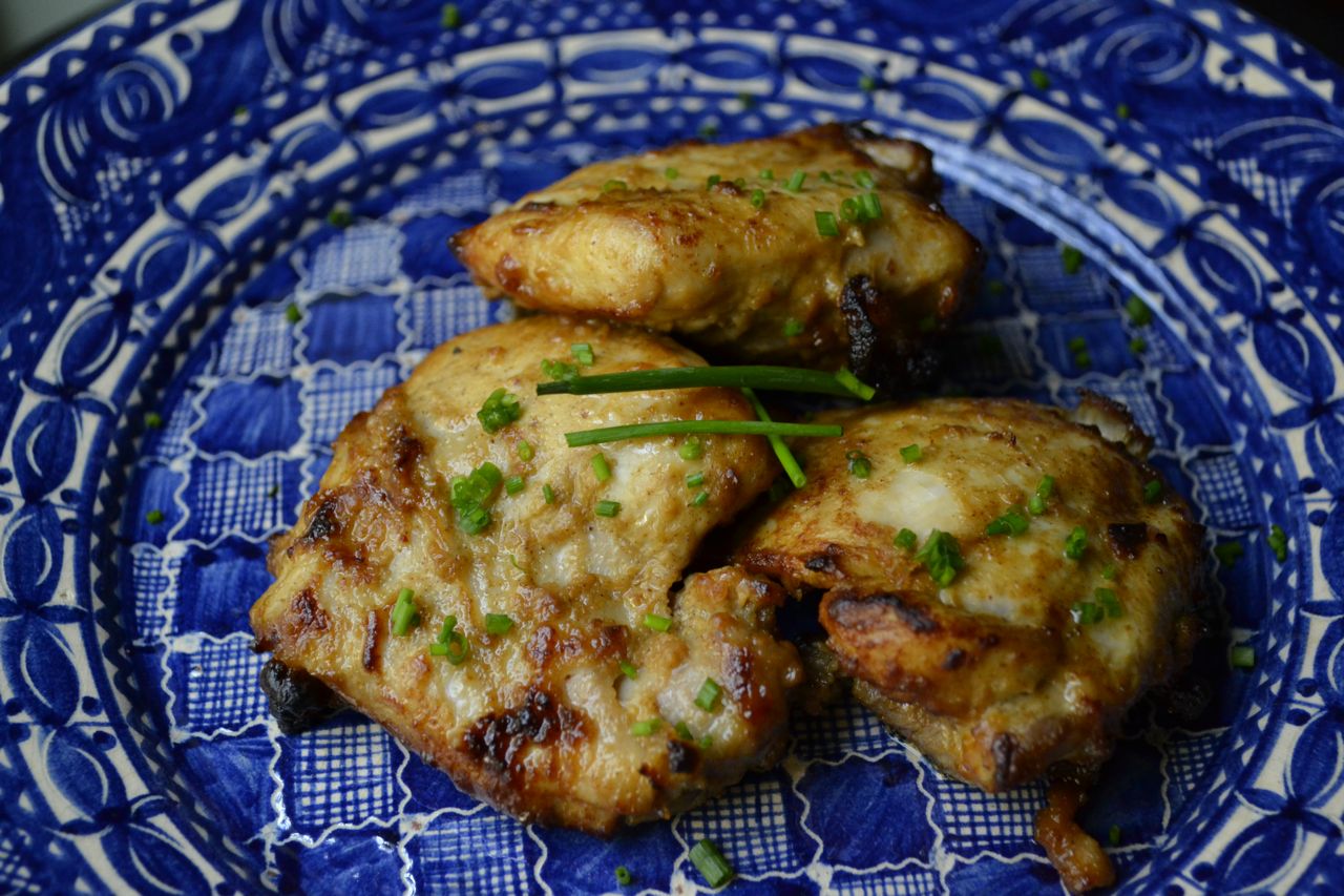 Preheat broiler. Line a baking sheet with tin foil. Remove thighs from container, shake off excess marinade and place on baking sheet. Broil for 5 minutes, flip thighs; broil for another 8 minutes. Remove thighs and serve immediately. Enjoy!