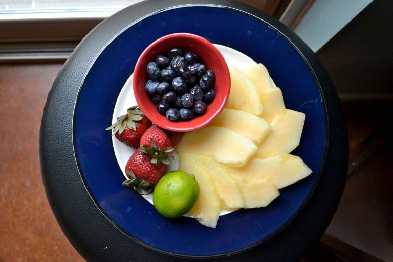 Breakfast during these times and fast and furious – I turn to smoothies with freshfruits, almond milk and protein powder. I try not to fuss about it too much and rather just go with what I have in the fridge. The base is always almond milk and protein powder and from there I just use my judgment. One morning it’s Vanilla Cherry Oatmeal and the next it’s Chocolate Almond. Yesterday’s was an attempt to conquer the growing amount of cantaloupe taking up space in Cindy and Bob’s fridge. Smoothies containing melons tend to be lighter than the Chocolate Almond, say, which I attribute to high water content in anything from watermelon to honeydew to any of the heirloom varieties I see in the market these days. And as my last day in Phoenix was looming around 105 degrees, this morning melon blast was cool and refreshing. Now, packed and already on the road, I can relax for a few days at least before I have to repeat the packing process again for The Islander. Oh joy!