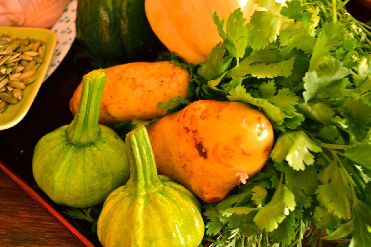 Several of these ingredients are not readily available in the States. If you frequent a farmers market venders there may have suitable small, round squash to substitute for guicoy. Pattypan squash would also work well. The closest thing I can think of to replace the guisquil (or chayote) is an acorn squash, as I have never seen these in the States. I am thinking perhaps well stocked Latin American markets may have them, but acorn squash is a good substitute. I am also working on a vegetarian version, because this recipe just screams EGGS to me, so look out for that soon. Total time: 2 hours, 10 minutes. Active time: 1 hour; serves 8 hearty portions, with leftovers.