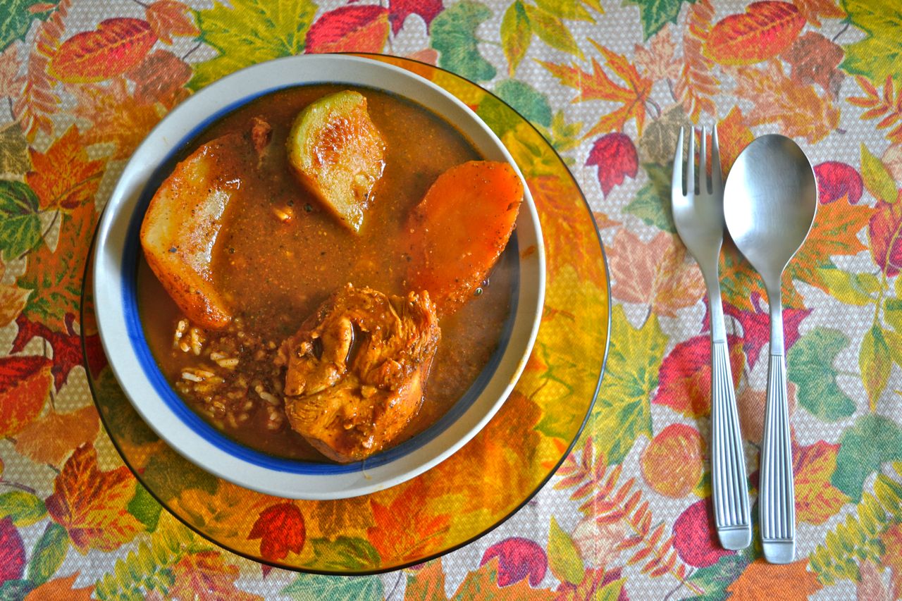 Pepian is a typical Guatemala dish. It amounts to a thick, hearty stew composed of numerous vegetables, a protein of chicken, pork, or both, and a sumptuous broth. Toasted tomatoes, tomatillos, cilantro and seeds, sesame and pumpkin, are blended into a smooth gravy with the help of a blender – even an authentic Guatemalan kitchen is not without it’s modern conveniences. Every Guatamalteco prefers their Pepian a bit differently. Some swear by a more caldo or soup-like consistency where a spoon is absolutely necessary to lap up every last drop of bother. For some who prefer the sauce to be thicker, achieved by adding flour or cornstarch, rice, tortillas and a fork get the job done. Some will roast their seeds and chiles longer for a darker, oscura, sauce and others prefer to have a lighter version with a quick toasting to let the flavors be. I have not sampled enough Pepians to know my preference yet. Three instances is certainly not enough to make an educated judgement on this subject. I do know I could eat a lot of Pepian, daily if you let me, in order to make my recommendation to you.