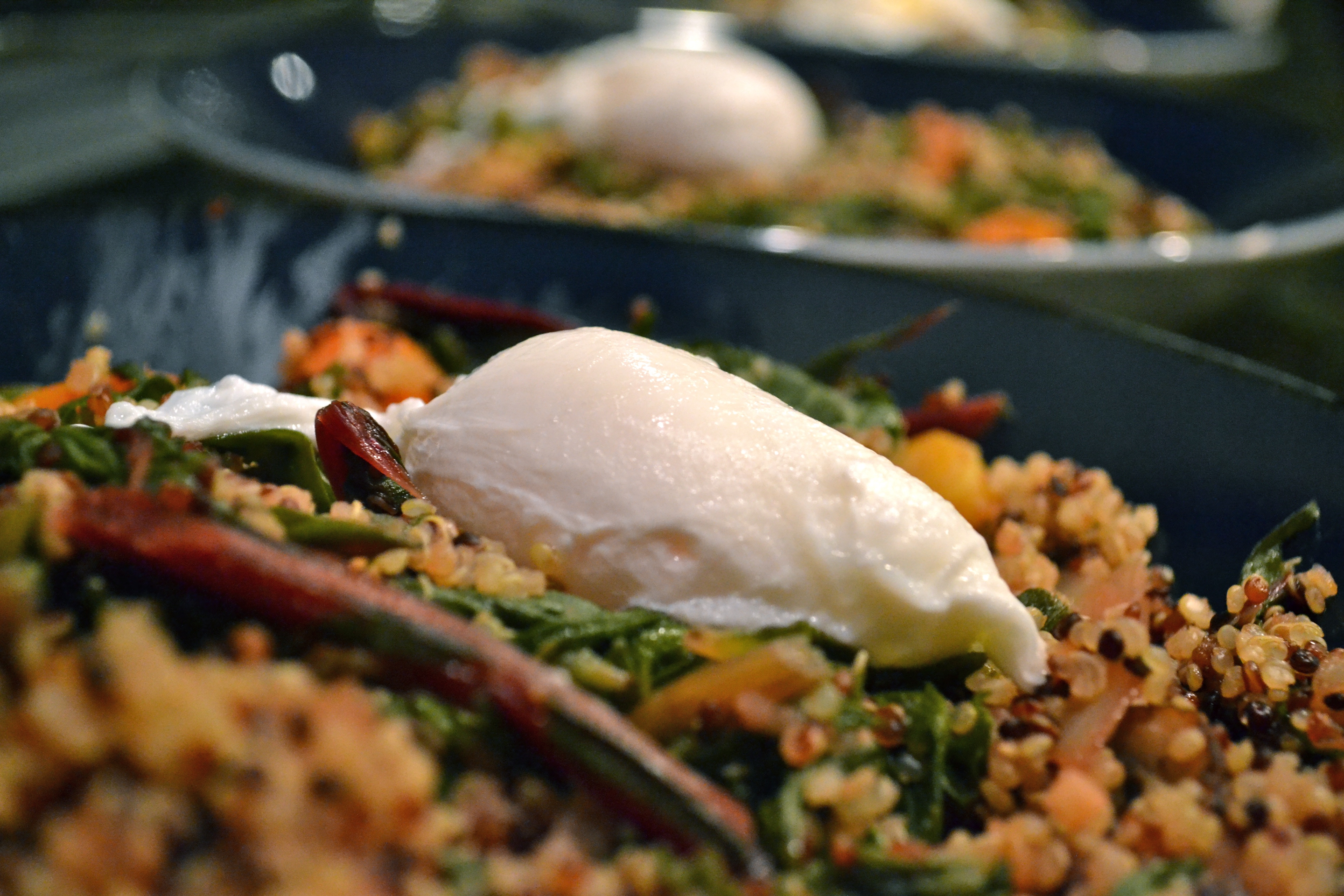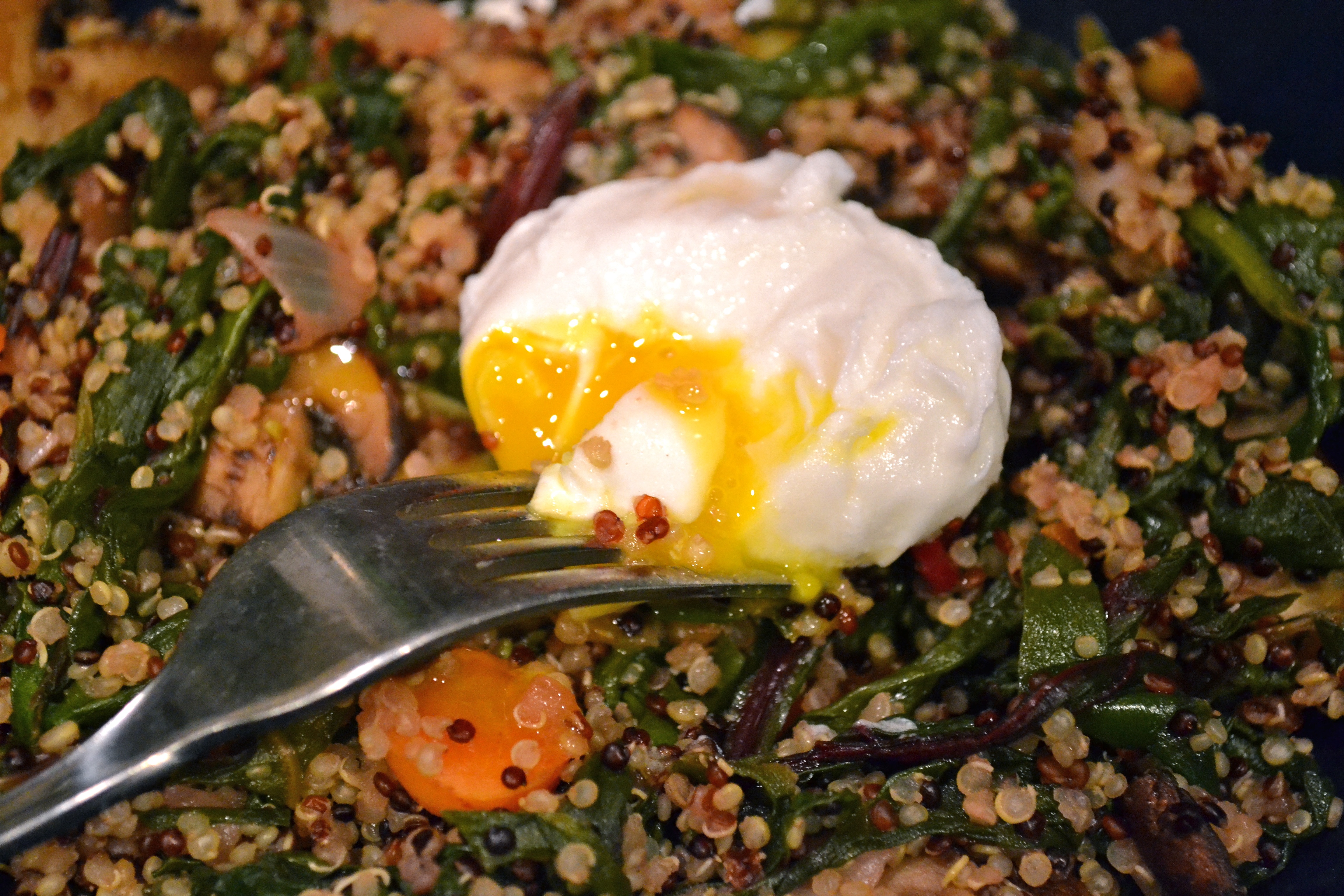 Red Quinoa Bowl with Swiss Chard and Poached Eggs