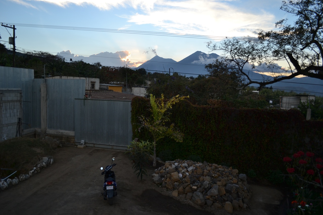 (Fuego, Acatenango and my scooter from the roof of the SJ house…)
