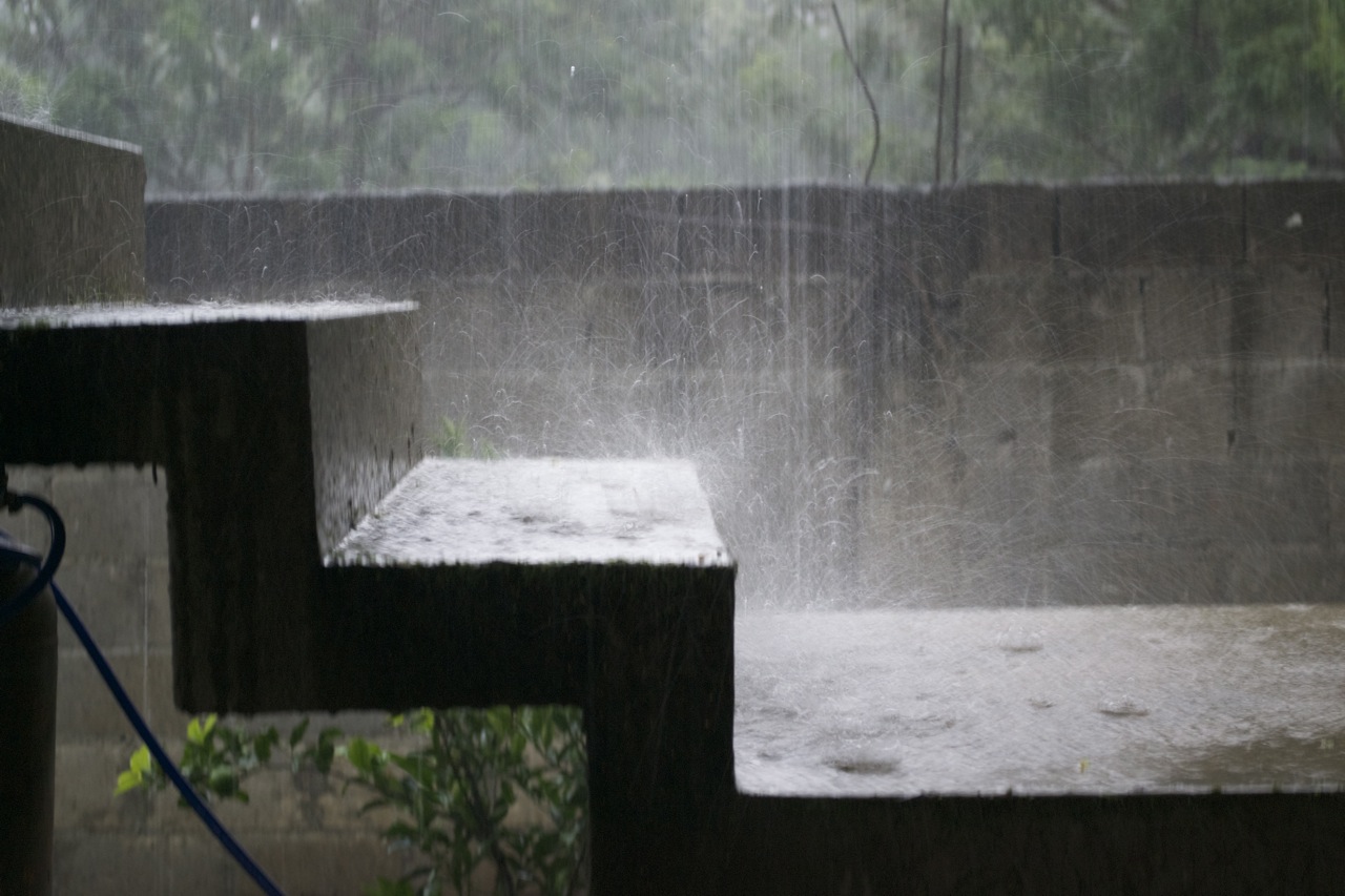 (rain on the steps of the SJ House)