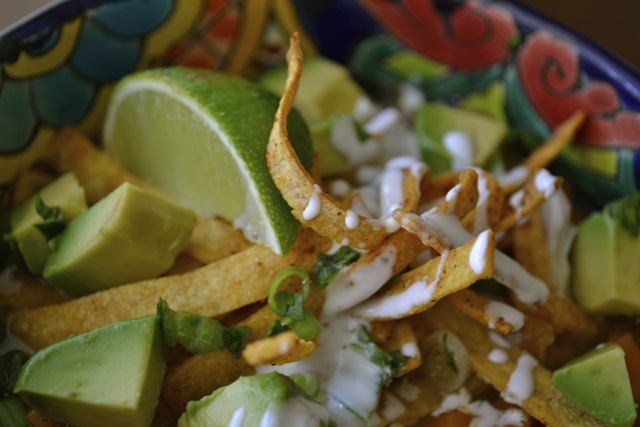 tortilla strips (recipe below) or broken pieces of tortilla chips